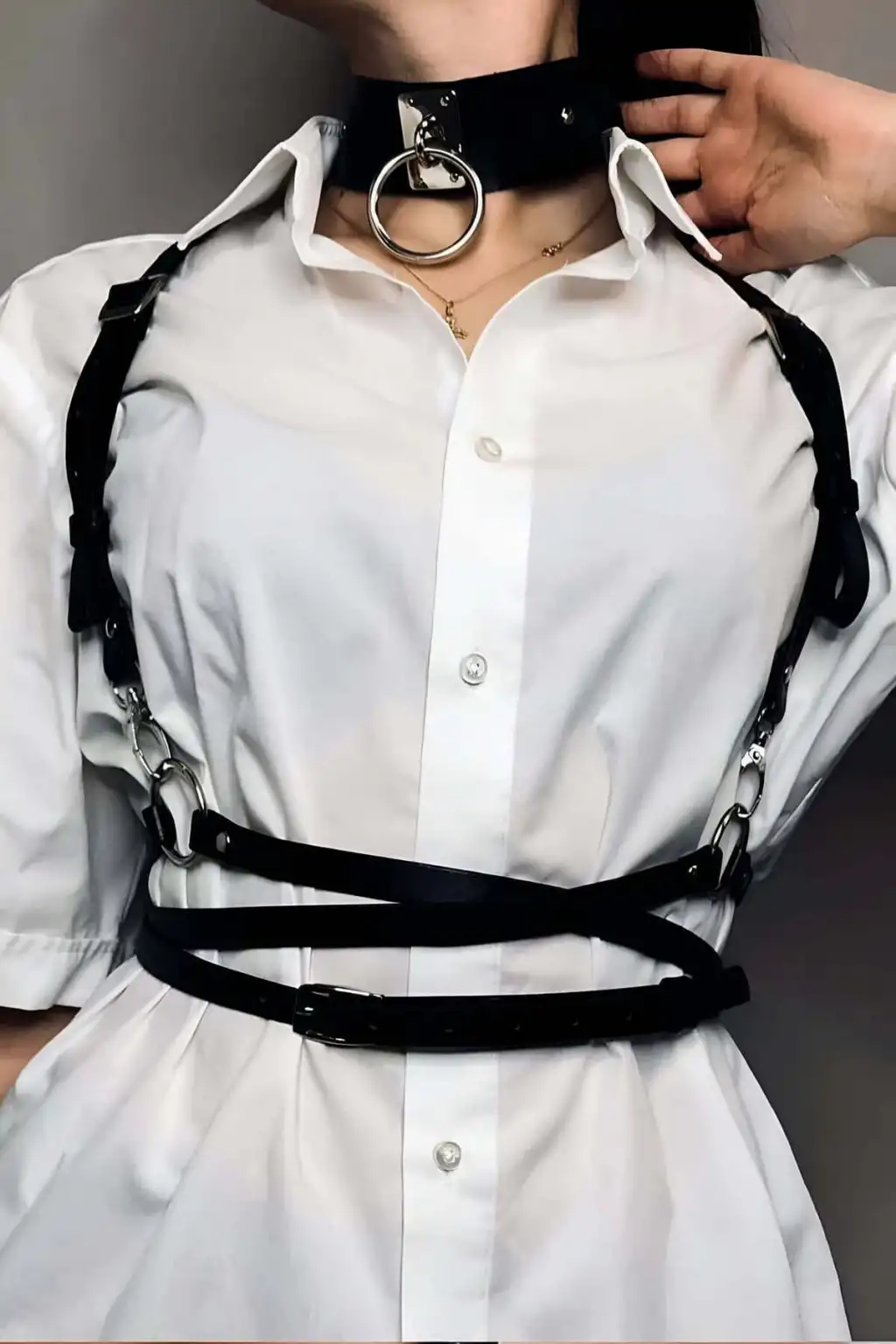 • Ürün ve paket içeriği: 2 parça (1 ad. Deri Göğüs harness , 1 ad. Choker-Tasma)