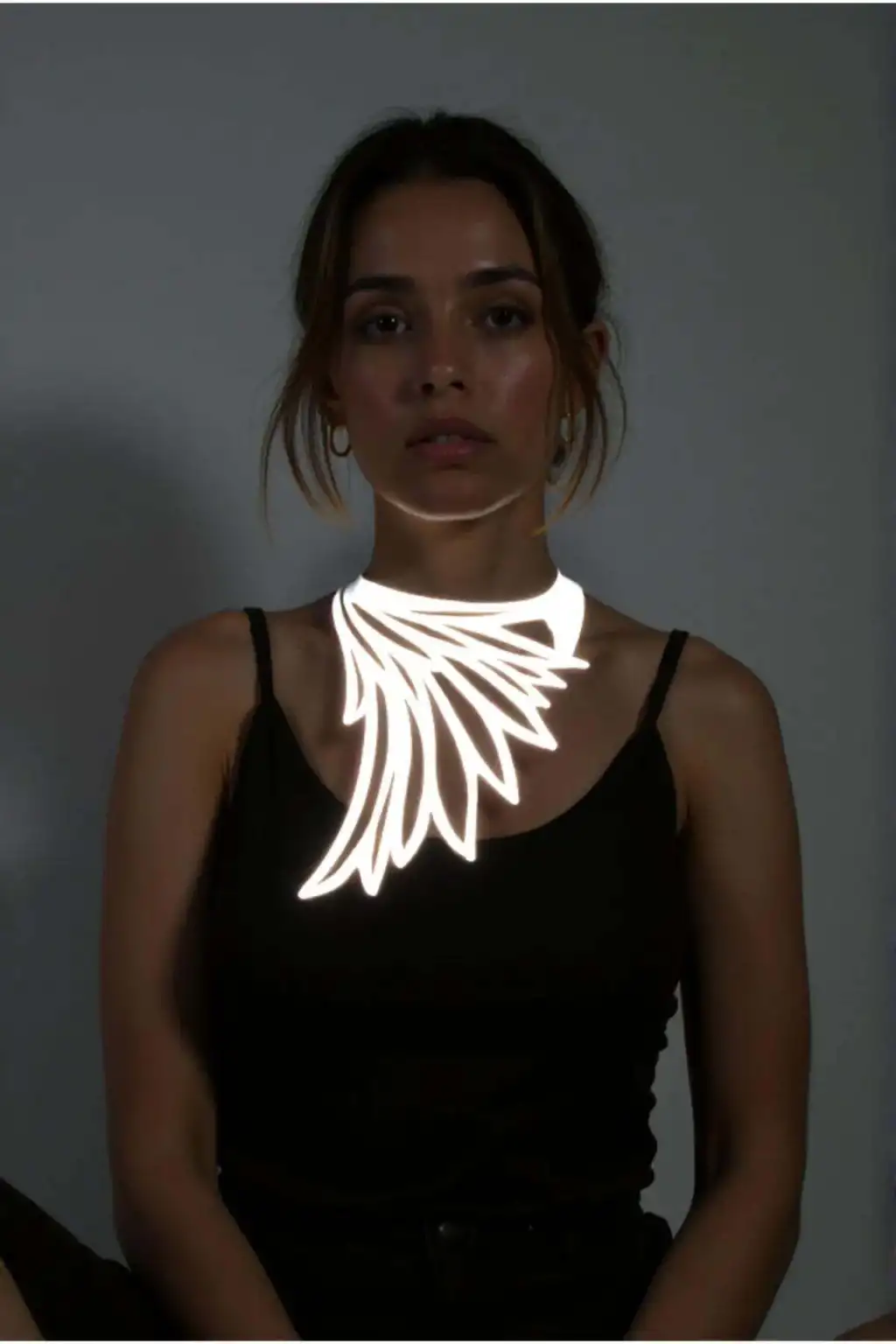 Beyaz Reflektörlü Büyük Kuş Kanadı Choker Kolye, Tarz Lazer Kesim Kolye - APFT1418