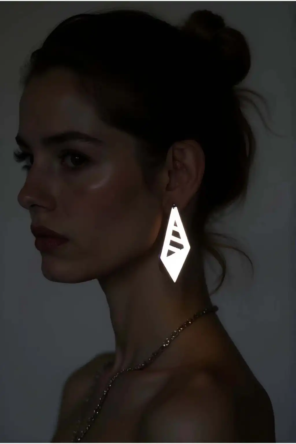 Beyaz Reflektörlü Prizma Küpe, Şık Lazer Kesim Küpe - APBJ011