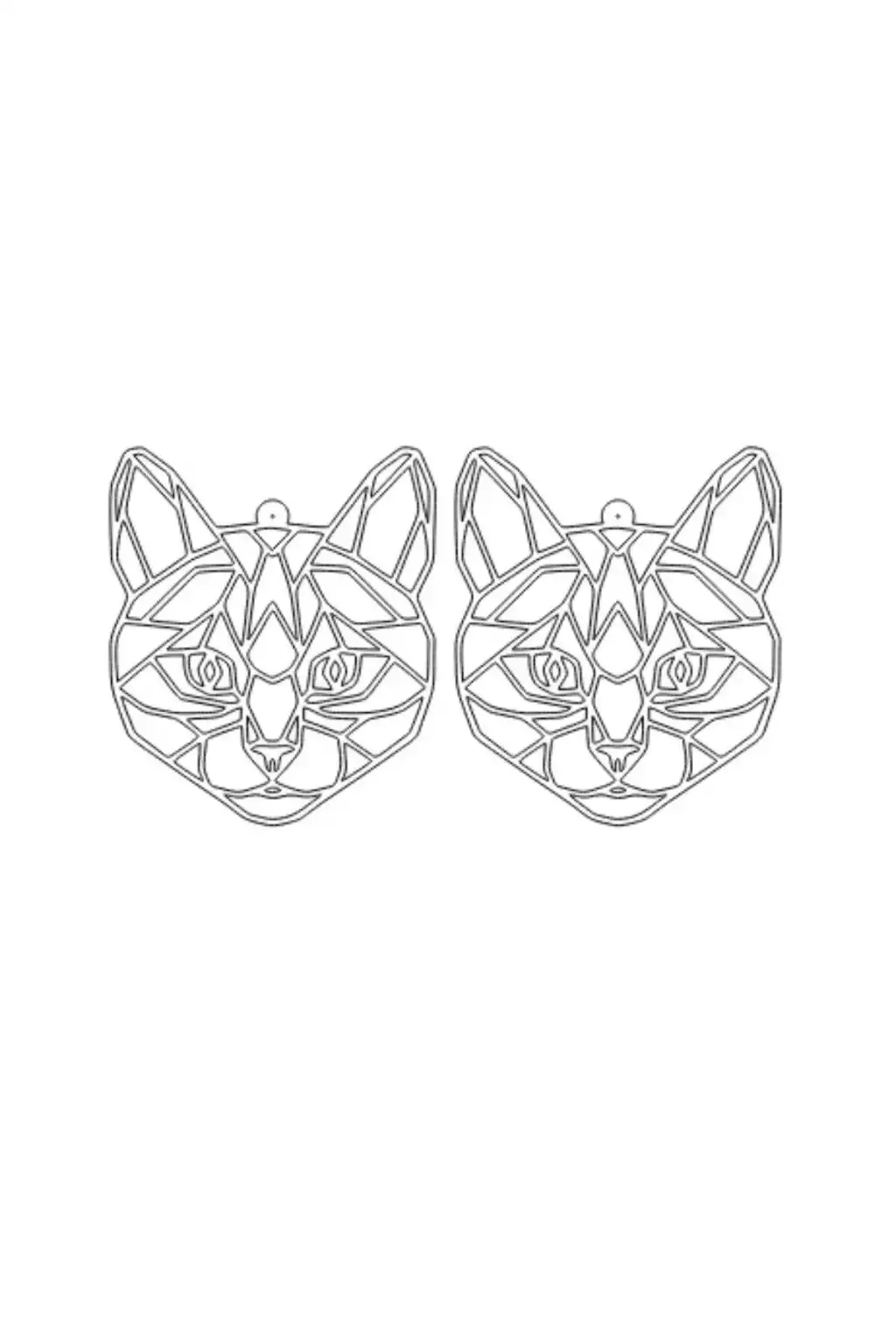 Beyaz Reflektörlü Soyut Kedi Yüzü Küpe, Şık Lazer Kesim Küpe - APBJ017