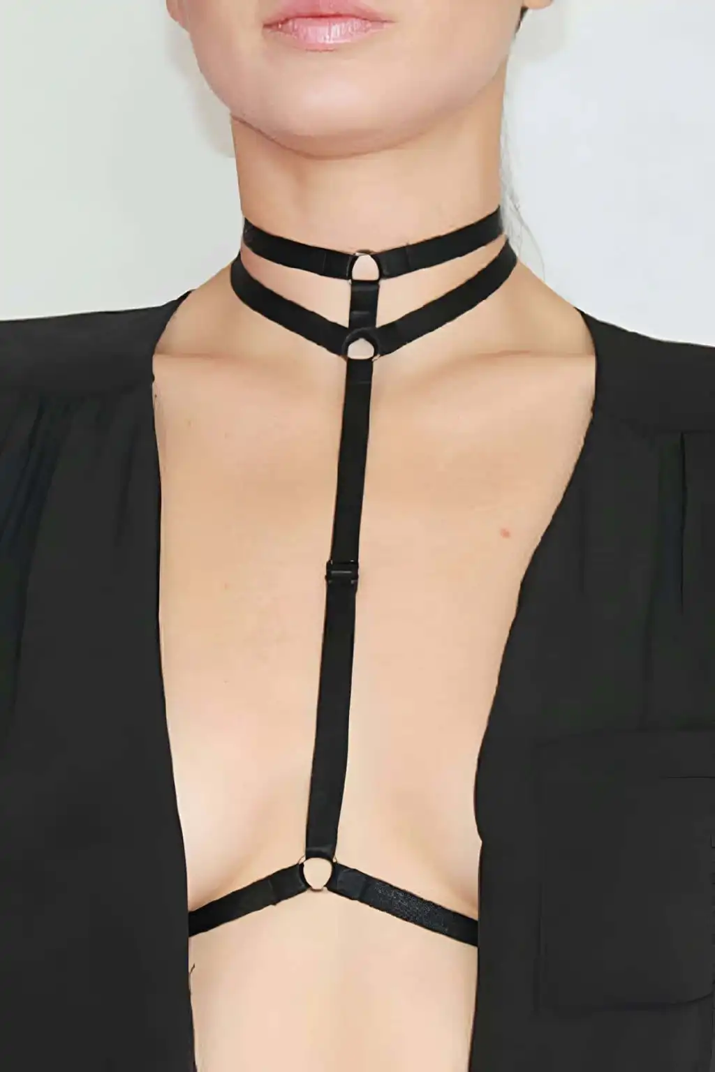 Boyunda Çift Sıralı Şık Lastik Harness - APFT84