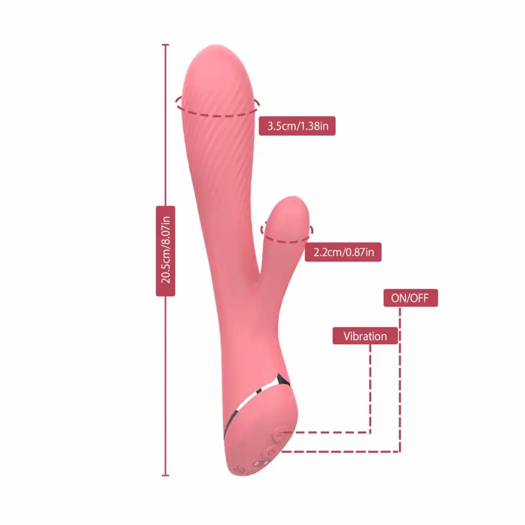 Coney, “rabbit” tasarımıyla hem iç uyarımı hem de dış uyarımı birlikte sunan, günlük kullanım için ideal bir çift etkili vibratördür. Uzun ve kıvrımlı gövde G noktası odaklı bir açı yakalamayı kolaylaştırırken, esnek yan başlık hassas bölgeye daha kontrollü temas eder. Gövdedeki dokulu yüzey (ribbed yapı) sürtünme hissini artırarak daha yoğun bir deneyim hedefler. 9 titreşim modu sayesinde yumuşak başlangıçtan daha güçlü ritimlere kadar farklı seçenekler sunar; tek tuşla modlar arasında geçiş yapabilirsiniz. IPX6 suya dayanıklı yapısı, sıçramalara karşı koruma sağlar ve temizliği pratikleştirir. Şarjlı kullanımıyla pil masrafı oluşturmaz; düzenli kullanımda konfor sağlar. Kullanım öncesi/sonrası temizlik için ılık su ve nazik bir ürün temizleyicisi tercih edin. Tamamen kuruduktan sonra tozlanmaması için ayrı bir kese/kutu içinde saklayın. Silikon oyuncaklarda genellikle su bazlı kayganlaştırıcı önerilir. Teknik Bilgiler: Renk: Pembe Malzeme: Silikon + ABS Titreşim: 9 mod Suya dayanıklılık: IPX6 Şarj: Rechargeable (şarjlı) Ölçü (görsel): Uzunluk 20.5 cm, baş çap 3.5 cm, yan baş çap 2.2 cm Kutu: 12 × 5.5 × 24 cm Barkod: 759746976963