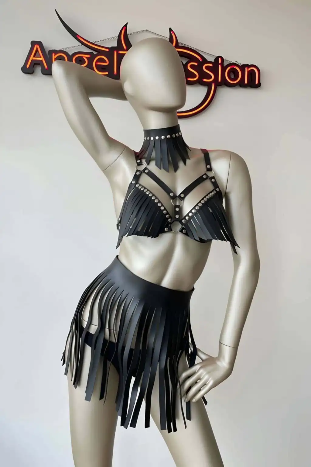Püslüllü Deri Harness Takım, Püsküllü Elbise Aksesuarı - APFT768