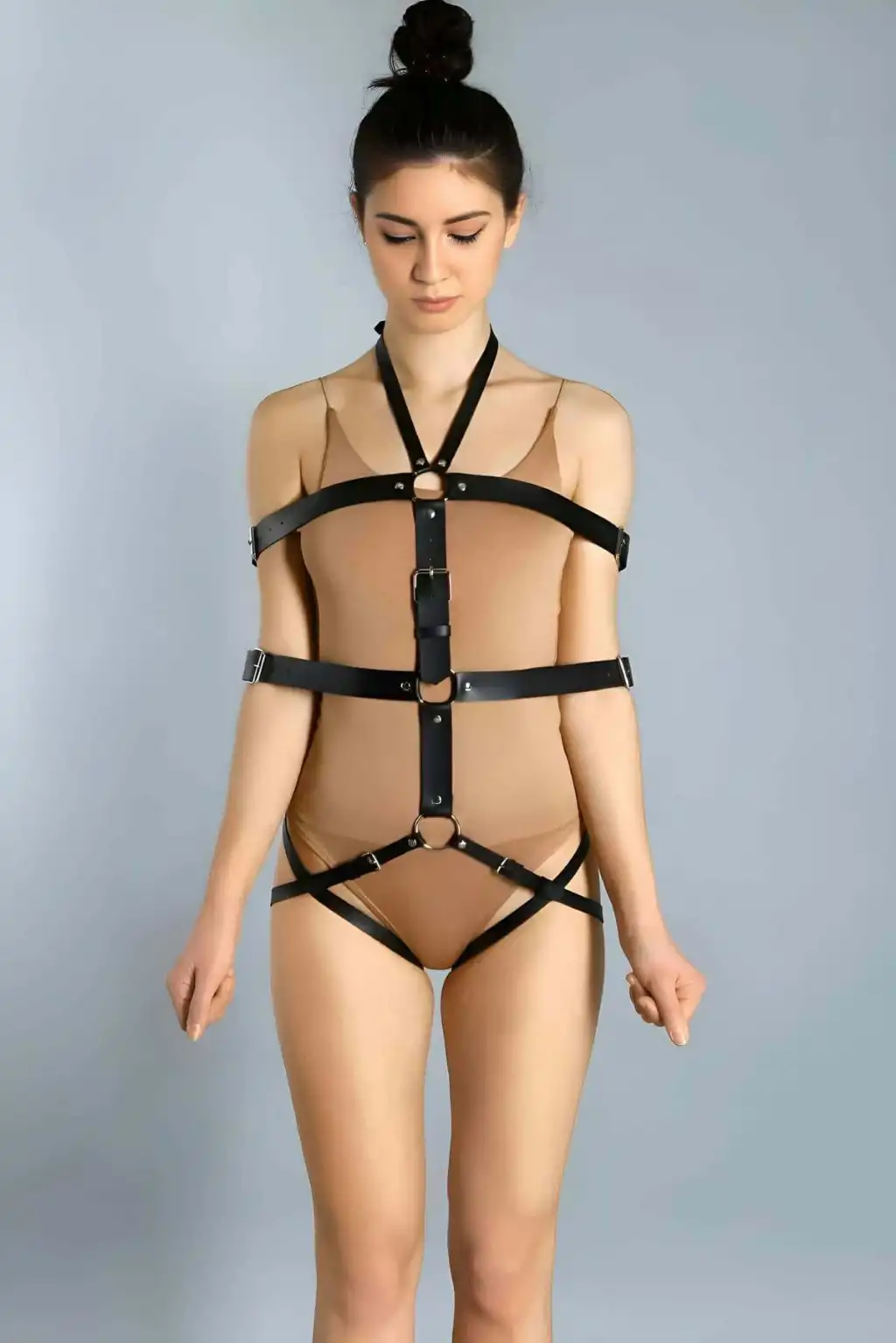 Fantazi Vücut Kelepçesi, Ağı Açık Deri Esaret Kemeri Takımı - APFT1062