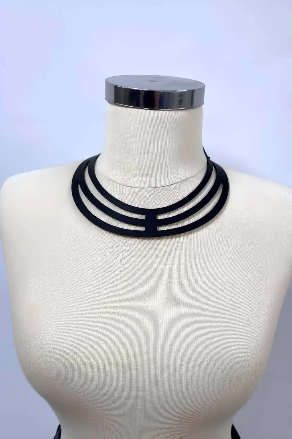 Halka Detraylı Şık Deri Choker, Deri Kolye - APFT1413
