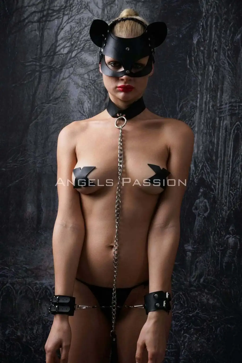 • Ürün ve paket içeriği: 6 parça (1 ad. maske, 1 ad. tasma, 2 adet el kelepçe, 2 adet ayak kelepçe) İç çamaşır ve göğüsucu kapatıcı dahil değildir.