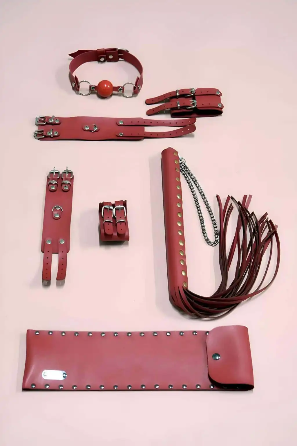 • Ürün ve paket içeriği: 4 parça (Kırbaç ve kırbaç kılıfı, el kelepçe takım, ayak kelepçe takım ve ağız topu)