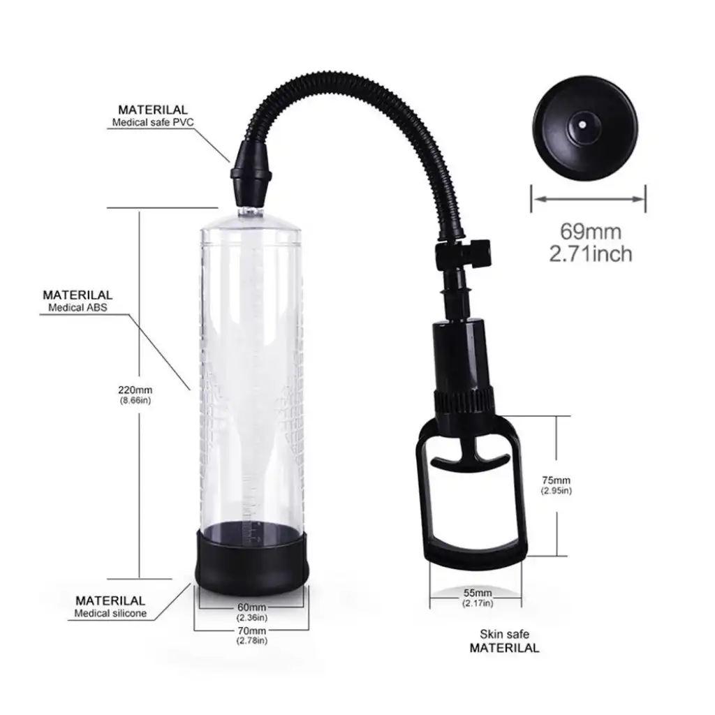 Manuel Penis PompasıKullanımı kolay tasarımı ve ergonomik boyutlarıyla dikkat çeken Manuel Penis Pompası, cinsel performansınızı artırmak ve penis büyütme hedeflerinize destek olmak için tasarlanmıştır. 70 mm x 220 mm ölçülerindeki kompakt gövdesi, elde rahatça tutulabilir ve kontrollü vakum oluşturmanıza olanak tanır.Öne Çıkan ÖzelliklerErgonomik Boyut: 70 mm x 220 mm gövdesi, kullanım sırasında konforu ve kavramayı kolaylaştırır.Manuel Kontrol: Basınç seviyesini dilediğiniz gibi ayarlayabilir, istediğiniz noktada vakumu durdurabilir veya devam ettirebilirsiniz.Sağlam Malzeme: Dayanıklı, sızdırmaz tasarımı uzun ömürlü bir kullanım ve etkili performans sağlar.Kolay Temizlik: Parçalara ayrılabilen yapısı, hızlı ve hijyenik temizlik imkânı sunar.Manuel Penis Pompası, basit ve etkili kullanımıyla penis büyütme yolculuğunuza başlamak veya mevcut rutininizi güçlendirmek isteyen erkekler için idealdir. Rahat, güvenli ve kontrollü bir deneyim için bu pratik ürünü tercih edebilirsiniz!