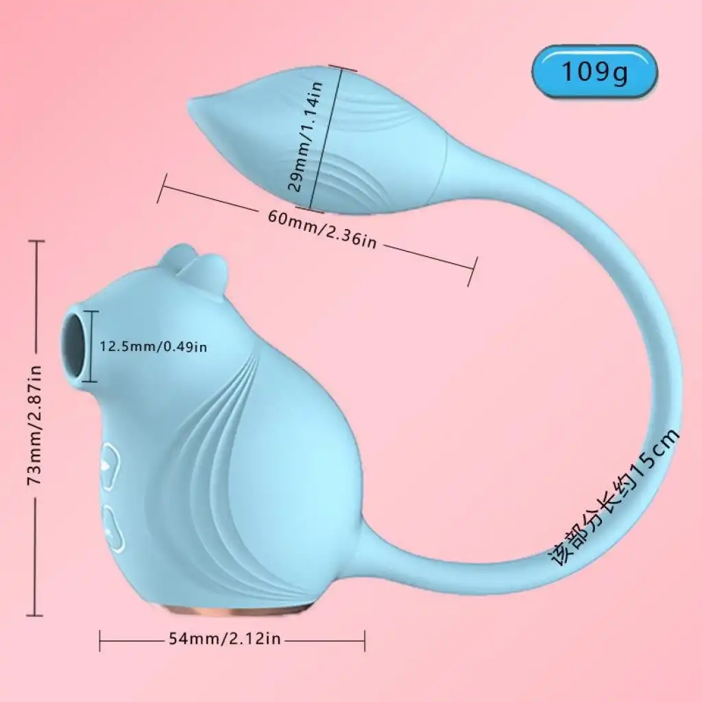 Hem tek başına kullanım hem de çiftler için tasarlanan bu kompakt set, iki farklı uyarımı aynı anda bir araya getirir: Ana gövdedeki vakum (emme) başlığı dış uyarım için yoğun ve hedefli bir his sunarken, esnek kabloya bağlı titreşimli yumurta içten uyarımı destekler. Vakum ve titreşim modları bağımsız kontrol ile ayrı ayrı ayarlanabildiği için ister tek fonksiyonla, ister ikisini birlikte kullanarak ritmi tamamen kendin belirleyebilirsin. Yumuşak dokulu, cilt dostu silikon + ABS malzeme yapısı konforlu bir temas sağlarken; maksimum