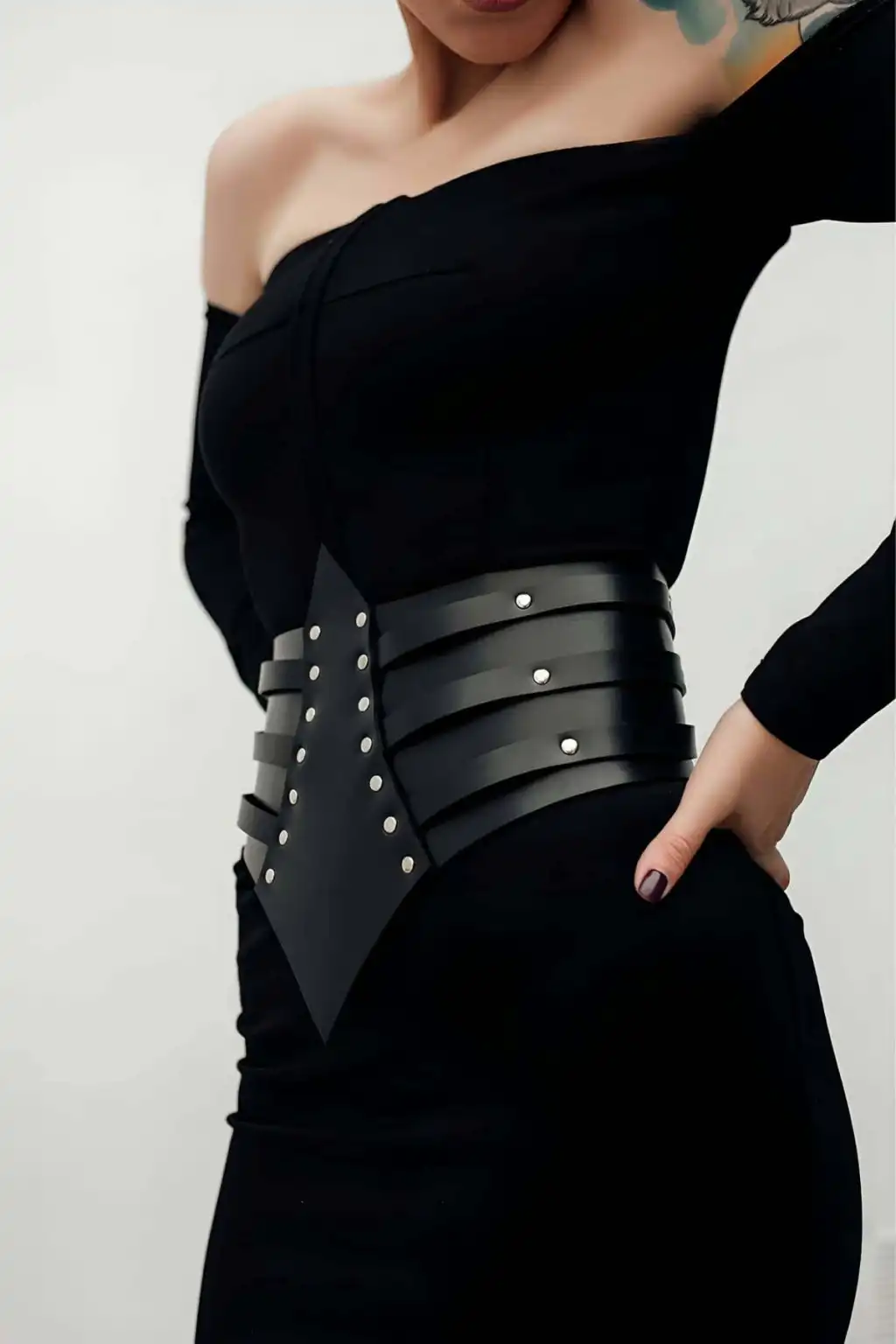 Perçin Detaylı, Şık Elbise Üzeri Deri Korse Kemer, Elbise Kemeri - APFT1087