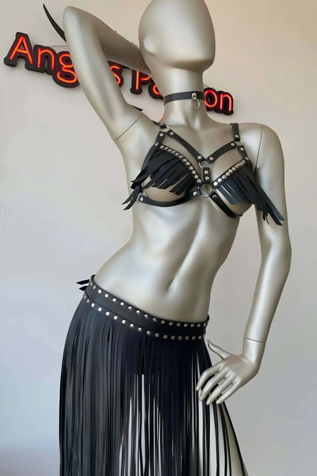 Püsküllü Etek ve Püsküllü Sütyen Harness Takım