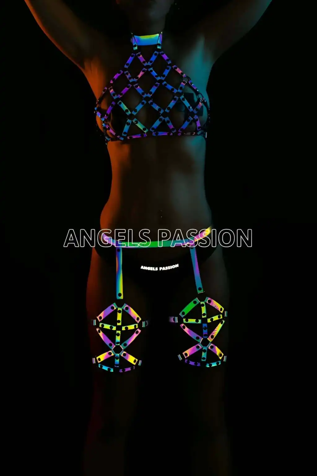 Dünya’da ilk kez Angels Passion markası tarafından üretilen Reflektörlü (Karanlıkta Parlayan) Seksi Jartiyer Harness Takım isimli Reflektörlü Harness ürünümüz, ışık vurduğunda parlayan özel üretim reflektörlü malzemeden hazırlanmıştır.