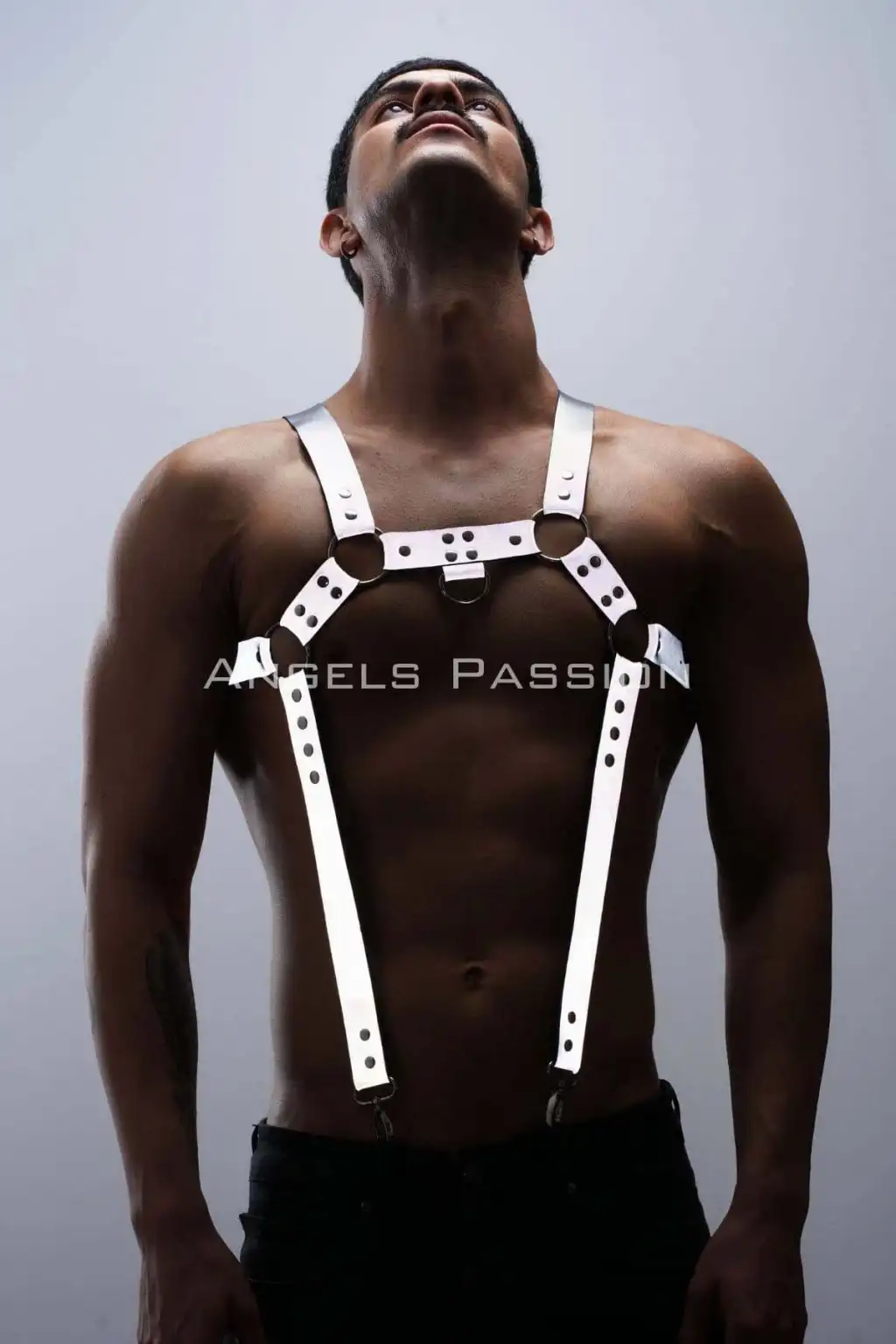 Reflektörlü (Karanlıkta Parlayan) Erkek Göğüs Harness, Reflektörlü Pantolon Askısı, Clubwear - APFTM23