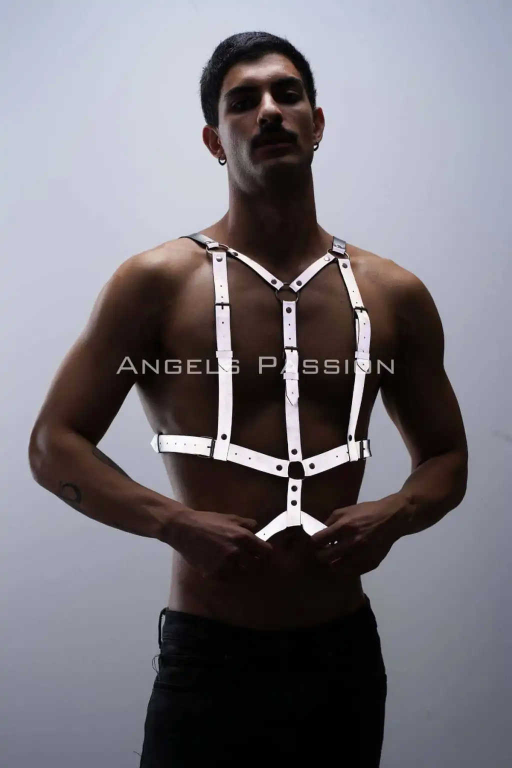 Reflektörlü (Karanlıkta Parlayan) Göğüs Harness, Clubwear, Tarz Erkek Vücut Aksesuar - APFTM40