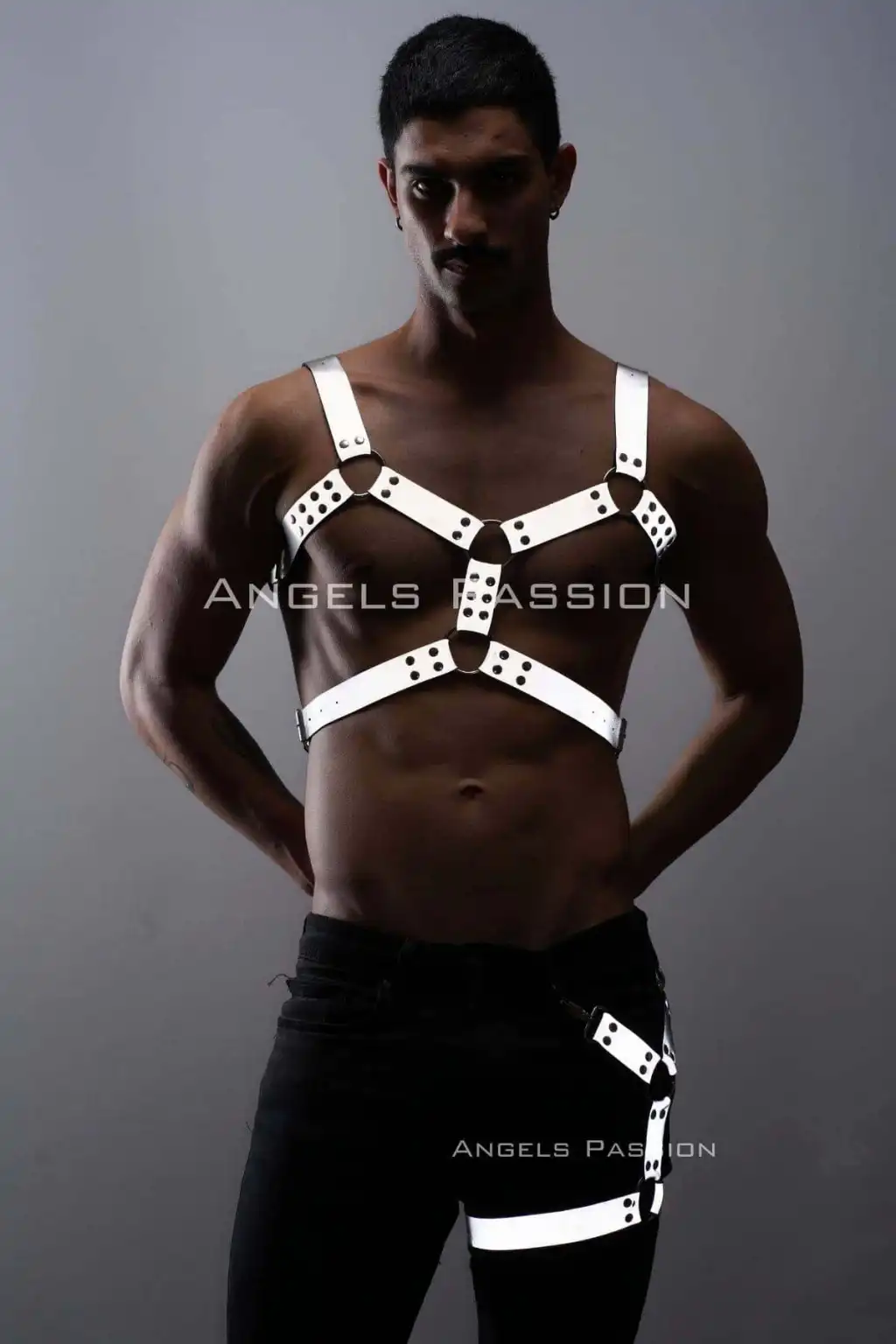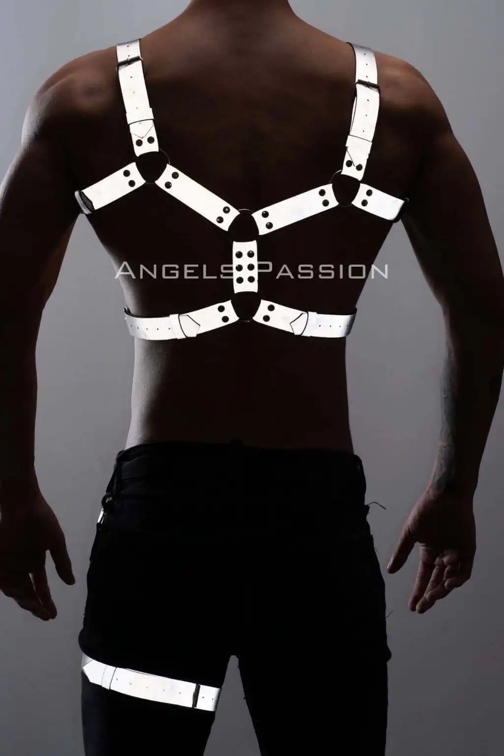 Reflektörlü - Karanlıkta Yansıyan Erkek Göğüs ve Bacak Harness Takım - APFTM199