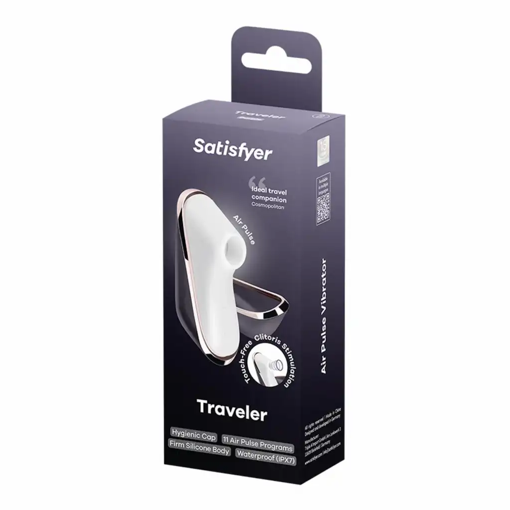 Satisfyer TravelerŞık ve taşınabilir tasarımıyla Satisfyer Traveler, özel Air-Pulse Teknolojisi sayesinde dizlerinizi titretecek kadar yoğun bir haz sunar. Fısıltı sessizliğinde çalışan bu zarif ürün, mıknatıslı kapağı ile hijyenik kalır ve ister seyahatte ister gizli buluşmalarda yanınızdan ayırmak istemeyeceğiniz eşsiz bir yol arkadaşı olur.Öne Çıkan ÖzelliklerKompakt boyut: Seyahat için mükemmel yol arkadaşı, her çantaya kolayca sığar.Air-Pulse Teknolojisi: Klitorisi doğrudan temas olmadan yoğun basınç dalgaları ile uyarır.Yumuşak, medikal silikon: Vücut dostu, cilde nazik ve hijyenik.11 farklı basınç dalgası yoğunluğu.Fısıltı modu (sessiz çalışma).IPX7 su geçirmezlik özelliği.USB manyetik şarj kablosu dahil.Şık mıknatıslı kapak sayesinde hijyenik ve gizli taşıma.15 yıl garanti.Satisfyer Traveler: Seyahatte Pratik HeyecanSatisfyer Pro 2 ve Satisfyer Penguin modellerinin küçük kardeşi olan Traveler, daha kompakt formuyla güçlü orgazmlar sunar. İş seyahati ya da tatilde yanınızda taşıyabileceğiniz kadar küçük boyutlara sahiptir. Şık tasarımı sayesinde dikkat çekmeden kullanılabilir.İçindeki güçlü teknolojiyle tavizsiz bir performans sunar ve onu gerçek bir yaşam tarzı ürünü haline getirir. Dünyanın neresinde olursanız olun, cinsel sağlığınızdan ödün vermeden keyif yaşamanızı sağlar.Satisfyer Traveler’ın Özel YanlarıŞık kapağı, mıknatıs sistemiyle güvenle kapanır ve hijyen sağlar.11 program seçeneği ile kan dolaşımınızı hızlandırır, yoğun haz yaşatır.IPX7 su geçirmez yapısı sayesinde duşta veya otel küvetinde kullanılabilir.Dahili şarj edilebilir bataryası, manyetik USB kablosu ile kolayca şarj edilir.Medikal silikon başlığı klitorisinizi nazikçe sarar ve kaygan yüzeyi ekstra konfor sağlar.Su bazlı kayganlaştırıcı ile birlikte kullanıldığında daha yoğun bir deneyim sunar.Temizliği son derece kolaydır; sabunlu ılık suyla veya özel hijyen spreyleriyle pratik şekilde dezenfekte edilebilir.Bu küçük mücevher, seyahatlerinizde size güvenilir bir şekilde eşlik eder, sıcak anlar ve eşsiz tatmin sunar.Teknik Özellikler "Satisfyer Traveler"Malzeme: ABS plastik, SilikonUygun Kullanım: KadınUyarım Türü: KlitoralBasınç Dalgaları: VarSu Geçirmezlik: IPX7Uzunluk: 107 mm (4.2″)Genişlik: 46 mm (1.8″)Yükseklik: 35 mm (1.4″)Ağırlık: 56 g (2 oz)Renk: Mor (Aubergine) / RosegoldBatarya: Dahili, şarj edilebilir (Akku)