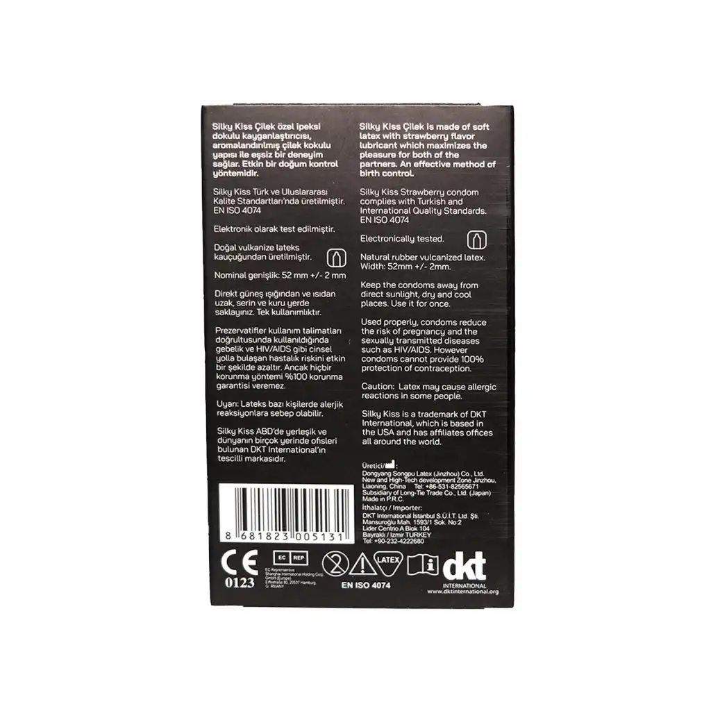 Silky Kiss ÇilekPartnerinize ve size özelGecenin en “tatlı” hali…Hayatım heyecan dolu, yeniliklere açığım diyen çiftlere özel…Enerji doluysanız ve eğlenmek sizin için öncelikliyse Silky Kiss Çilek prezervatifleri gecenizi renklendirmeye hazır.Uluslararası kaliteye sahip Silky Kiss prezervatifleri ISO 2074 standartlarına uygun üretilmiştir.%100 kaliteli latexten üretilmiştir. Hamilelik ve cinsel yolla bulaşan hastalıklara karşı korunma sağlar. Etkin bir doğum kontrol aracıdır.