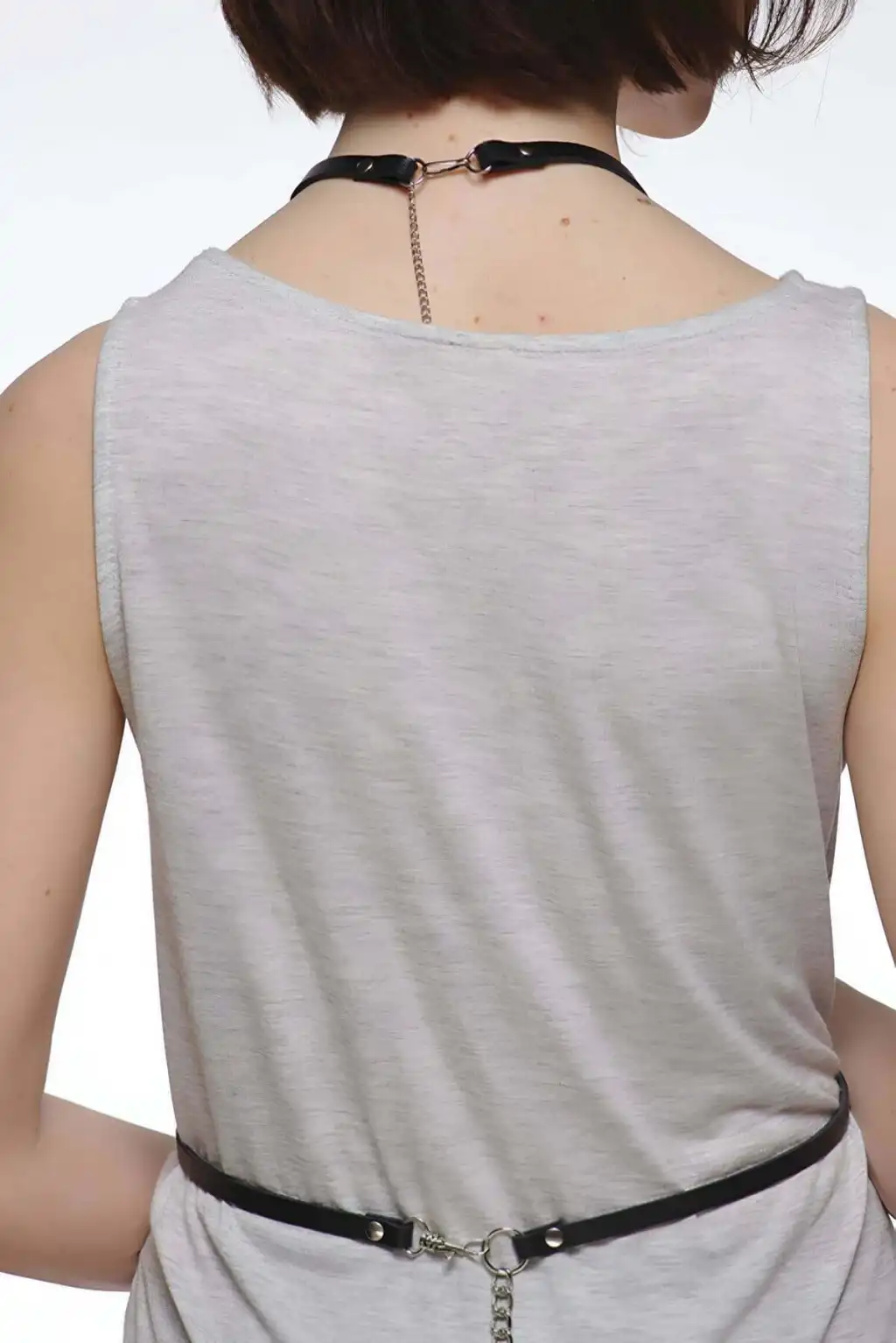 Zincir Detaylı Deri Göğüs Harness, Deri Fantezi Giyim, Elbise Aksesuar - APFT11