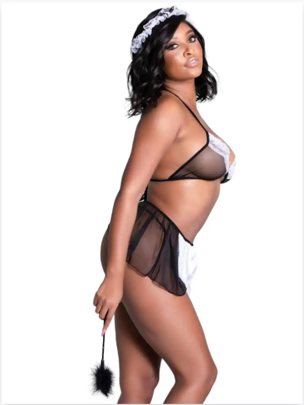 ÜRÜN 4 PARÇADIR 1 ADET SÜTYEN 1 ADET HİZMETÇİ ETEĞİ 1 ADET STRİNG 1 ADET SAÇ BANDI NOT : ÜRÜNE RESİMDEKİ ELDE OLAN PÜSKÜL FİYATA DAHİL DEĞİLDİR. Fantezi Tüllü Dantel Detaylı Hizmetçi Kostümü, baştan çıkarıcı ve zarif bir görünüm sunan, fantezi iç giyim kategorisinde popüler bir tasarımdır. Bu kostüm, geleneksel hizmetçi kıyafetlerinden esinlenerek modern ve çekici bir şekilde yeniden yorumlanmıştır. Malzeme: Tül: Hafif ve şeffaf tül kumaş, vücut hatlarını zarif bir şekilde ortaya çıkarır ve ciltle uyumlu bir dokunuş sağlar. Dantel: Kostümün belirli bölgelerinde kullanılan dantel detayları, kıyafete zarafet katar ve romantik bir hava yaratır. Tasarım: Hizmetçi Tarzı: Klasik hizmetçi kostümü stilinde, önlük ve fırfır detayları ile süslenmiştir. Mini Etek: Kostümün mini etek tasarımı, bacakları ön plana çıkarır ve hareket özgürlüğü sunar. Renk: Siyah ve Beyaz: Geleneksel hizmetçi kostümlerinde sıkça kullanılan siyah ve beyaz renkler, kostümün klasik havasını korur. Kullanım Alanları: Özel Anlar: Romantik akşamlar, fantezi oyunları, yıl dönümleri ve Sevgililer Günü gibi özel günler için mükemmel bir seçimdir. Toptan Fantezi Kostümler