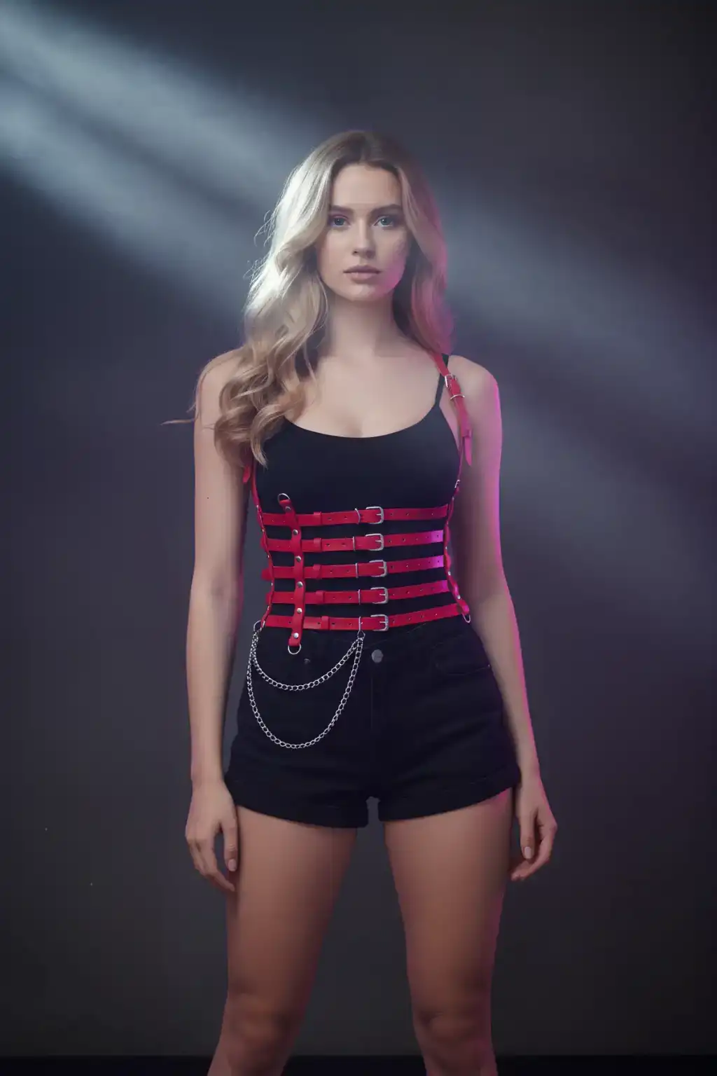 Zincir Detaylı 5 Sıralı Kırmızı Deri Kemer, Deri Korse Kemer - APFT626