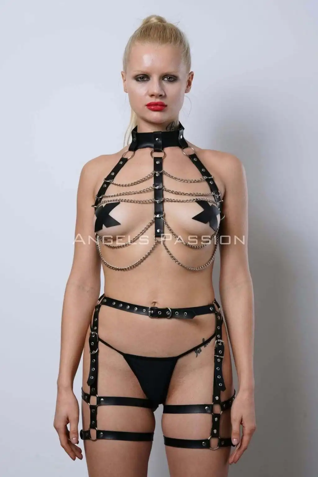 • Ürün ve paket içeriği: 2 parça (1 ad. Zincirli Göğüs Harness , 1 ad. Jartiyer Harness) iç çamaşırı dahil değildir