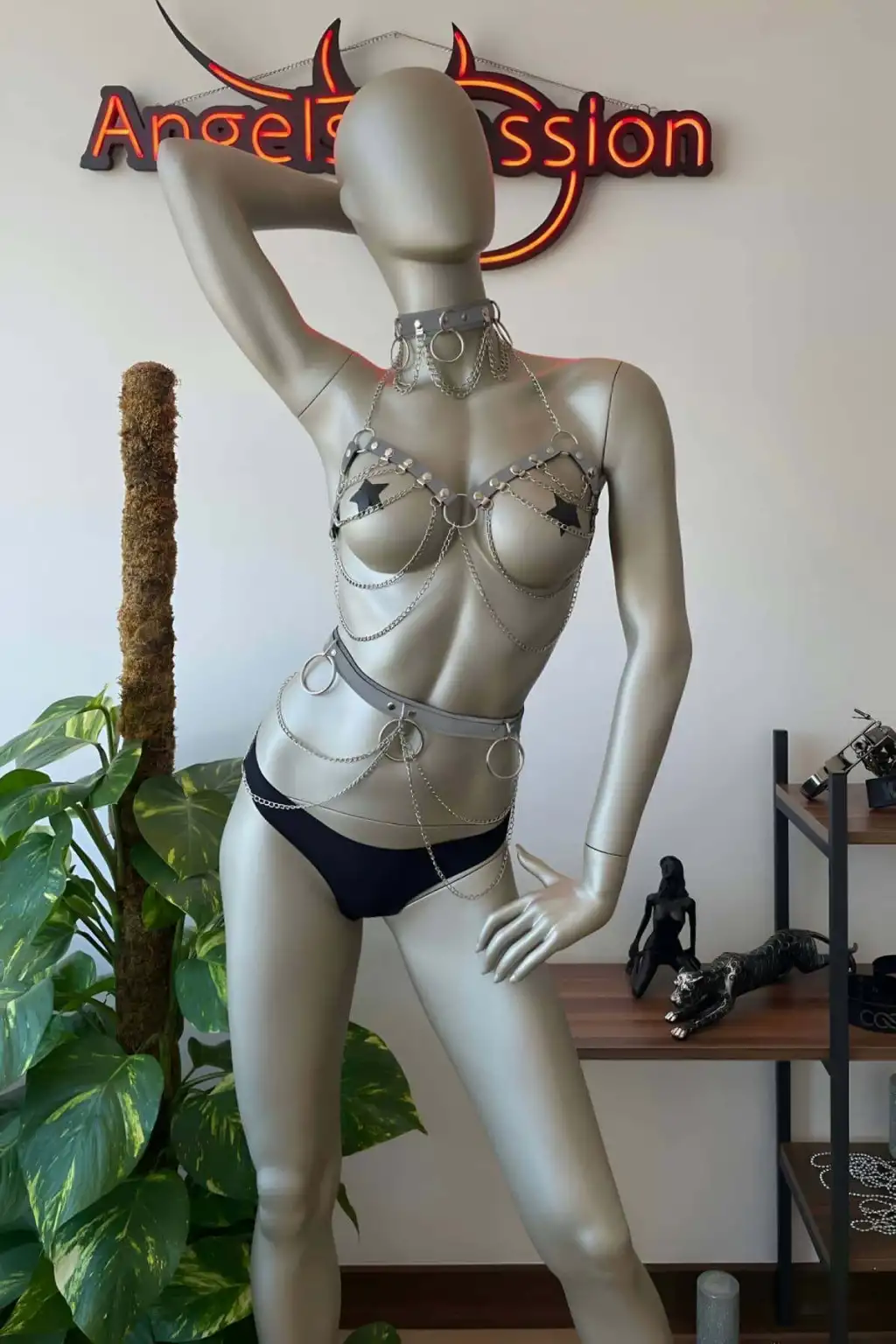 Ürün İçeriği: 3 Parça (Choker, sütyen ve bel harness. İç çamaşırlar ve aksesuarlar dahil değildir.)