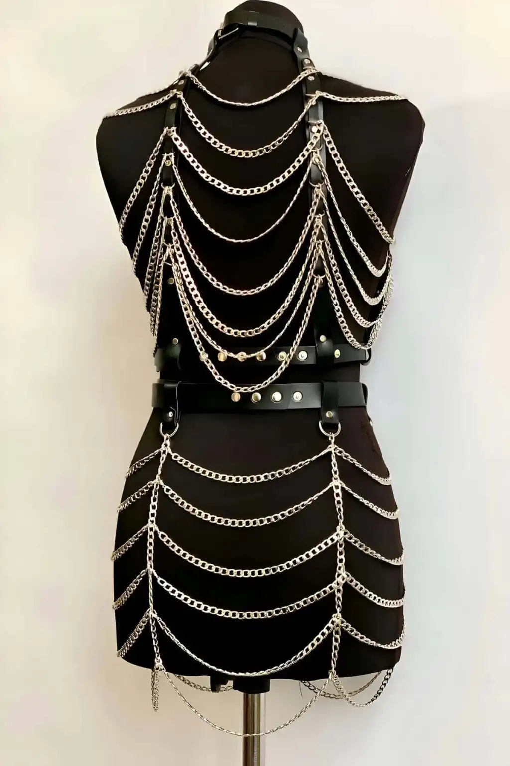 • Ürün ve paket içeriği: 2 parça (1 ad. Zincirli Göğüs Harness , 1 ad. Zincirli Etek Harness) Vücut çorap dahil değildir.