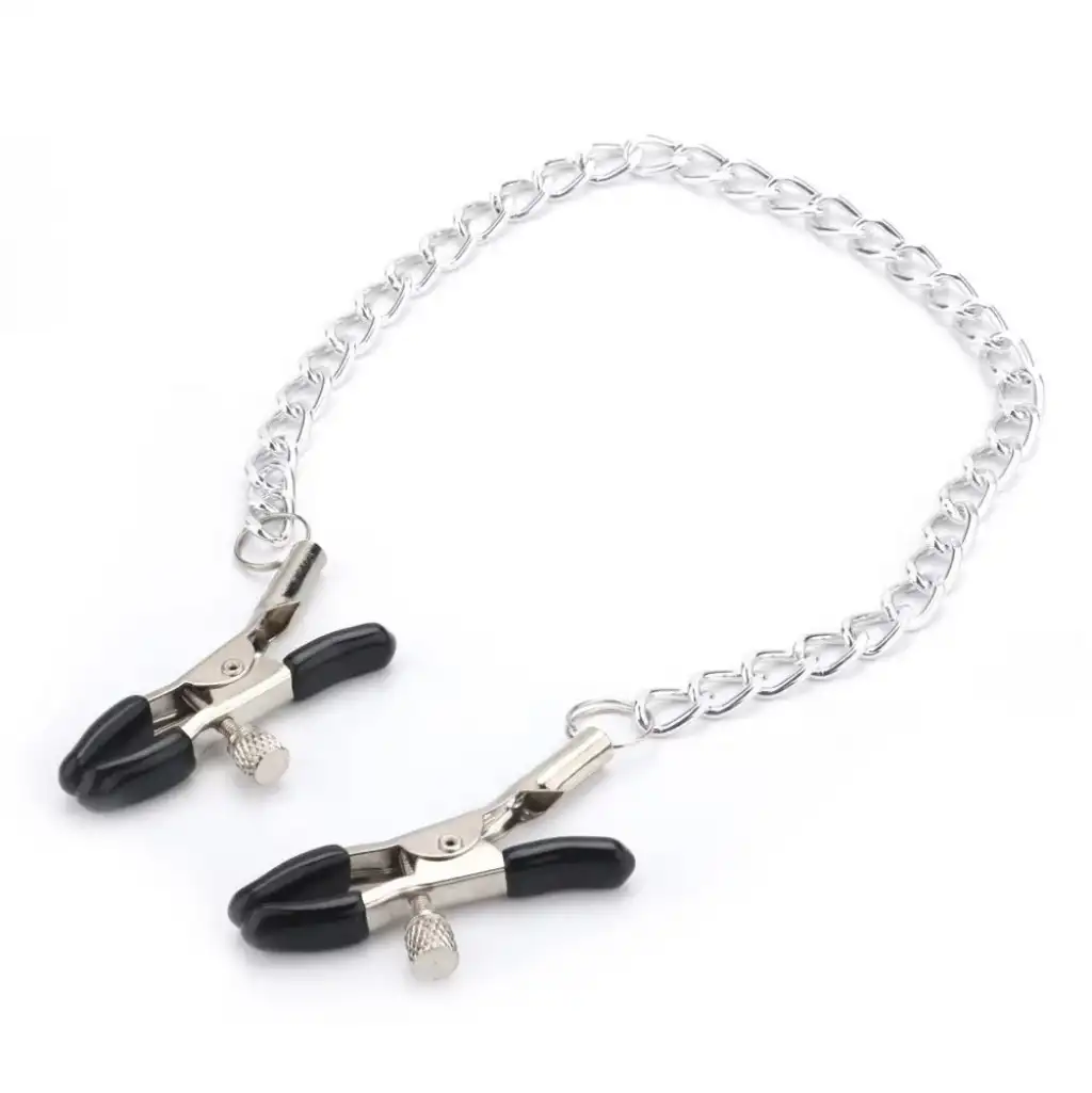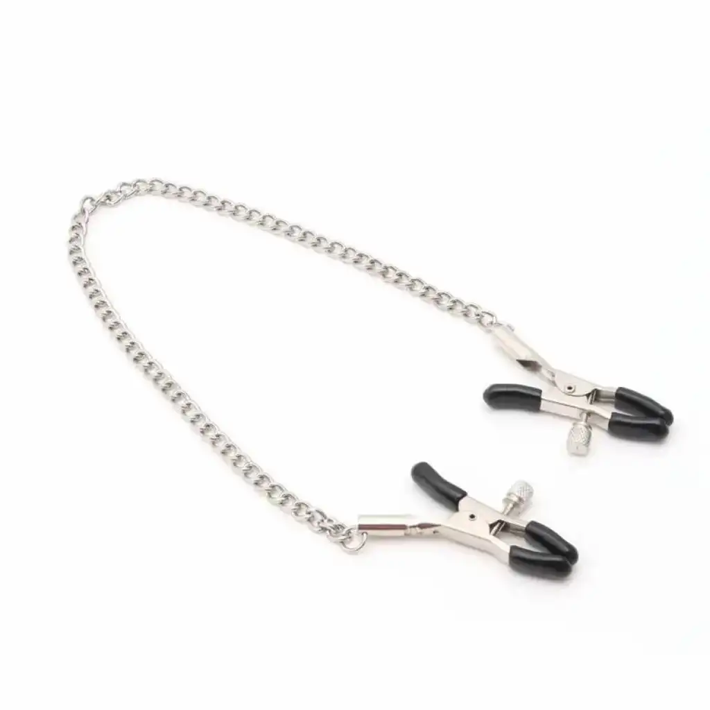 Zincirli Göğüs Ucu MandalıTutku dolu anlarınızı daha da unutulmaz kılmak için tasarlanmış olan Zincirli Göğüs Ucu Mandalı, estetik görünümü ve ayarlanabilir yapısıyla hem yeni başlayanlar hem de deneyimli çiftler için idealdir. Paslanmaz çelik zincirle birbirine bağlanan çift mandal, metal ve siyah silikon uçların birleşimiyle maksimum konfor ve etkili uyarım sunar.Mandal uçlarında yer alan vidalı ayar mekanizması sayesinde baskı seviyesi kolayca kontrol edilebilir. Bu da ürünü hem hafif bir uyarım hem de daha yoğun bir deneyim isteyenler için uygun hale getirir. Yumuşak silikon kaplamalar ise ciltle dost, kaymaz ve iz bırakmayan bir kullanım sağlar.Ürün Özellikleri:Uzunluk: Mandal 56.62 mm, zincir uzunluğu 320 mmAğırlık: 20 gramMalzeme: Paslanmaz çelik, silikon kaplamaRenk: Gümüş ve siyah kombinasyonuAyarlanabilir baskı seviyesiZarif zincir detayıyla estetik ve işlevselPartnerinizle birlikte keşfetmeye açık, şık ve güvenli bir aksesuar arıyorsanız, Zincirli Göğüs Ucu Mandalı vazgeçilmeziniz olacak. Romantizmi ve heyecanı bir araya getiren bu özel ürünle sıradışı deneyimlere hazır olun!