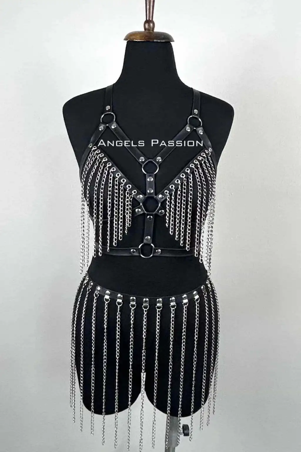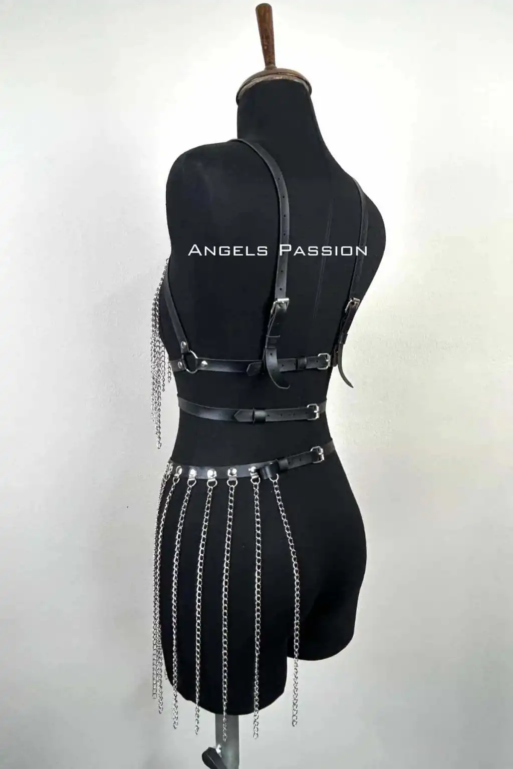 Zincirli Harness Takım, Deri Zincirli Etek Takım - APFT496